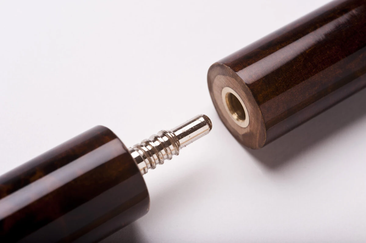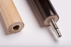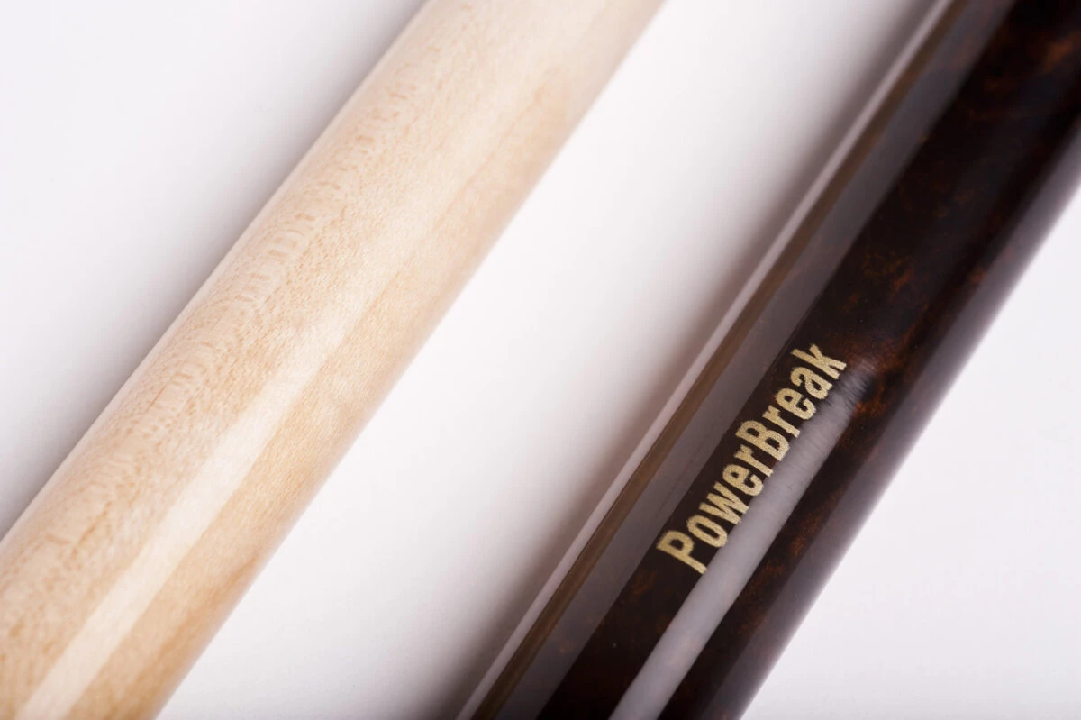 Das Break-Jump-Queue „Powerbreak“ gibt es in mehreren Designs. Das Modell „Dunkelbraun“ ist in einfachem dunkelbraun gestaltet. Es verfĂĽgt ĂĽber ein hartes Oberteil mit besonderem Schliff sowie eine schwarze Bakelit-Ferrule. Damit ist das Break besonders hart und trotzdem kontrolliert. Dank der weiteren Teilung des Unterteils und der Kunststoff-Ferrule fĂĽhren Sie Jump-Shots einfach und kontrolliert aus. Beide Gewinde sind mit einem Schnellverschluss versehen und damit schnell abschraubbar.