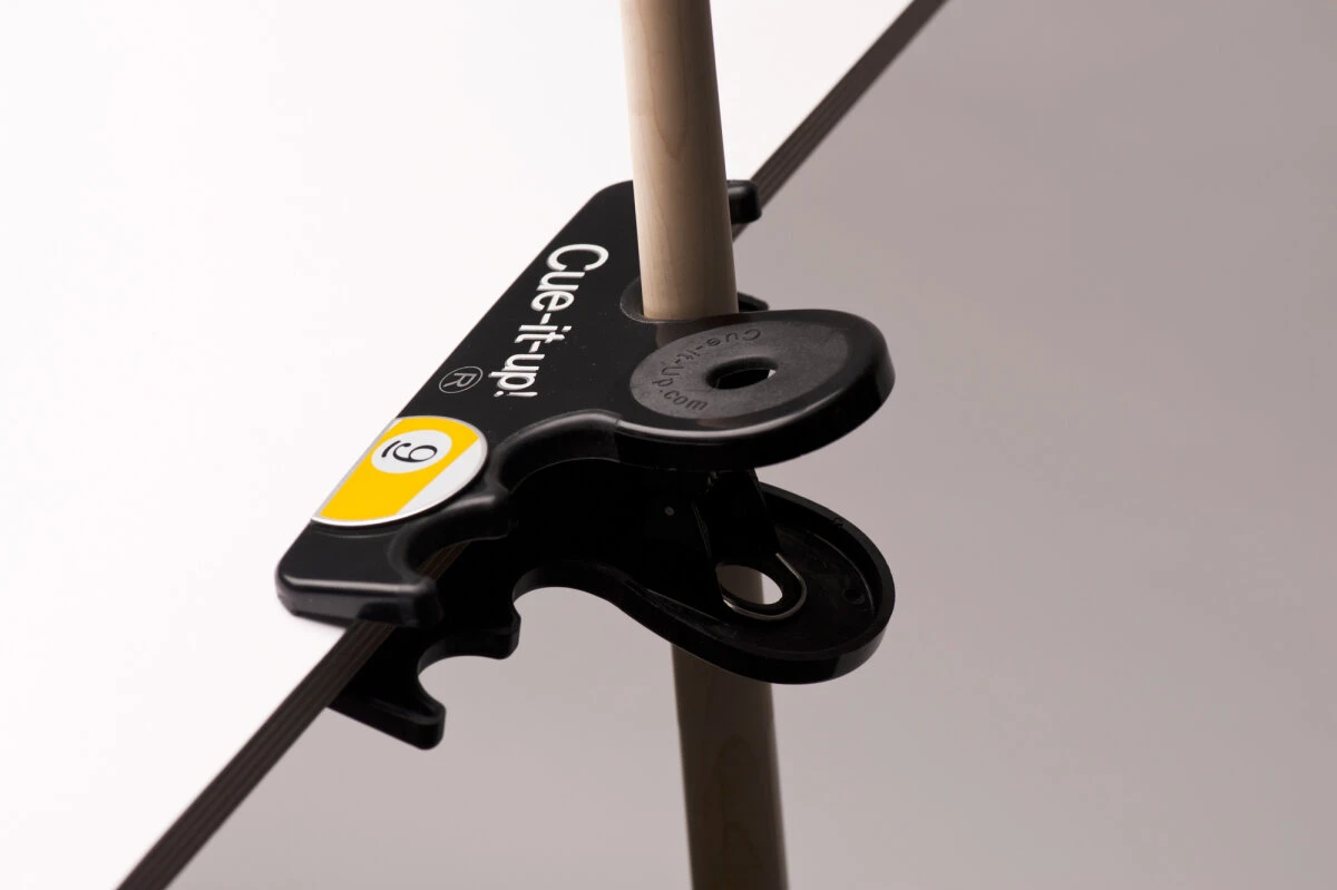 Mit diesem Queuehalter finden Sie immer einen sicheren Platz, um Ihre Queues abzustellen. Der Queuehalter wird an einer Tischplatte festgeklemmt und bietet bis zu vier Queues Platz.