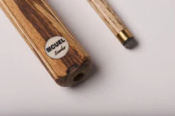 Ein schönes Einsteiger-Queue in schlichtem, klassischem Design mit 9,5mm breitem Qualitäts-Klebeleder. Auch zu diesem Preis erhalten Sie dieses Queue schon mit echt gesplicetem Dekor. Das heißt, dass die dunklen Spitzen („Splices“) durch Verleimung verschiedener Hölzer entstehen und nicht aufgemalt oder geklebt sind. Zusätzlich hat dieses Queue echte Splices am Unterteil, welche die schöne Verzierung mit wechselnden Hölzern erzeugen. Das Queue ist 3/4-geteilt und benötigt zum Transport somit einen entsprechenden Snooker-Koffer.