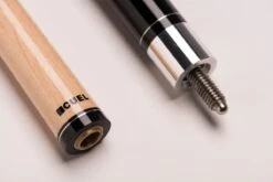 Die Billardqueues aus der BE0-Reihe von CUEL sind die perfekten Begleiter für Hobby- und Freizeitspieler sowie Einsteiger im Vereins-Poolbillard. Die zweiteiligen Queues haben eine Gesamtlänge von ca. 148 cm, was der klassischen Länge eines traditionellen Billard-Queues entspricht und ein Gewicht von 19-20 Unzen. Sie sind mittig geteilt und lassen sich in allen handelsüblichen Billardtaschen oder Billardköchern gut transportieren. Diese Pool-Queues überzeugen optisch mit verschiedenen schicken Printdesigns in Einlegeoptik, die sich den handgemachten Einlegearbeiten bei vielen hochpreisigeren Queues orientieren. Am hinteren Ende des Queues und über dem Abschlussring des Oberteils sind die Queues mit einem schwarzen CUEL-Logo versehen. Die Oberteile dieser Poolbillard-Queues sind aus Vollholz gefertigt, was für eine lange Haltbarkeit und konstantes Spielverhalten sorgt. Jedes Queue ist mit einem Lepro-Klebeleder ausgestattet und mit einem 5/16-18-Gewinde aus Metall verschraubt. Am Unterteil sorgt ein gewickeltes Griffband aus irischem Leinen für Sicherheit und einen optimalen Griff beim Stoß.
