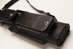 Die Hustler-Köcher gibt es in den Varianten 2/2 (2 Unter- und 2 Oberteile), 2/4 und 3/5. Alle Modelle haben eine Seitentasche für das Unterteil eines Jump-Queues. Zwei weitere großzügige Seitenaschen fassen Ihr komplettes Billardzubehör. Die Köcher sind in den Farben schwarz und braun verfügbar. Das Obermaterial ist ein sehr feines Kunstleder mit Schlangenleder-Prägung. Was man dem Köcher ebenfalls auf den ersten Blick ansieht, ist seine sehr stabile und saubere Verarbeitung mit extra starken Nähten und Verstärkungen an allen kritischen Stellen eines Queue-Köchers. Somit haben Sie sowohl an Ihrem Queue als auch an dem Köcher lange Freude.