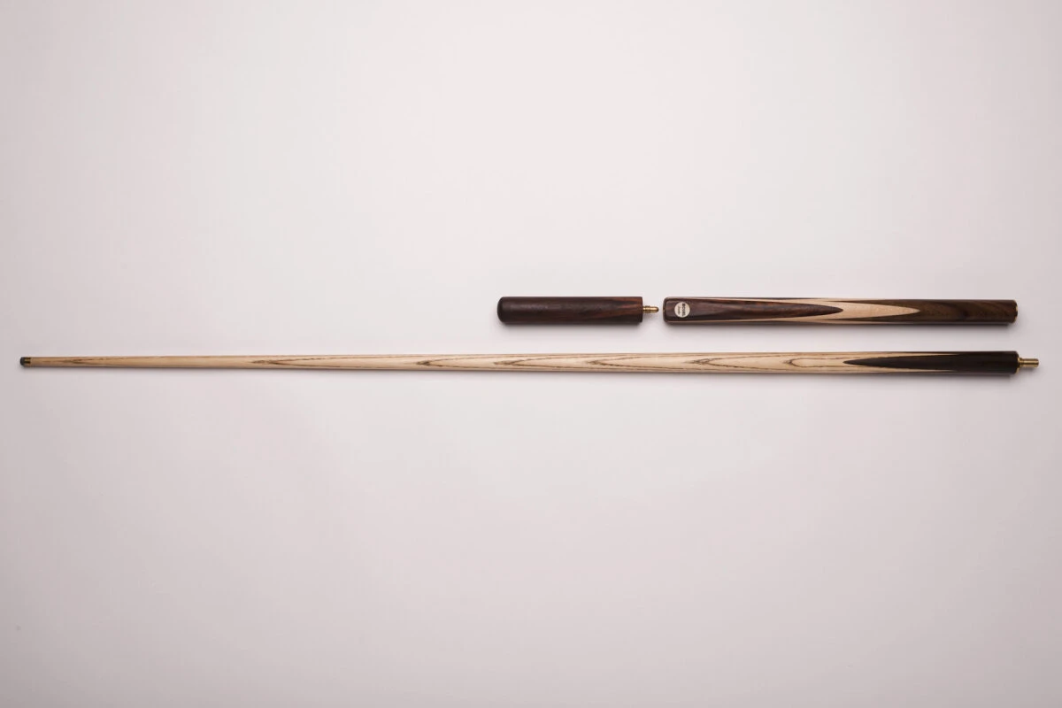 Ein schönes Queue in außergewöhnlichem Design mit 9,5mm breitem Klebeleder. Teil des selbstverständlich echt gespliceten Dekors ist eine Einlage aus verschiedenen Hölzern im Unterteil, der dem Queue eine besonders edle und hochwertige Note verleiht. Das Queue ist 3/4-geteilt und benötigt somit einen entsprechenden Snooker-Koffer. Zusätzlich erhalten Sie eine 15 cm lange Verlängerung, die Sie in das Gewinde am Ende des Queues einschrauben können.