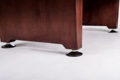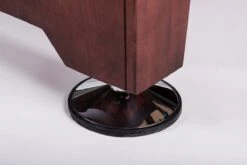 Der Bandenrahmen dieses Billardtisches ist mit einer besonders schlag- und kratzfesten Beschichtung aus HPL (wird auch für Küchenarbeitsplatten verwendet) versehen. Auch die Seitenblenden, die Füße sowie der Querträger sind aus massivem Holz gefertigt und bestechen durch das edle braune Design. Anders als bei optisch ähnlichen Modellen sind die Kappen an den Ecktaschen aus Metall und nicht aus Kunststoff gefertigt. Am Cuel Sport werden Sie lange Freude haben.