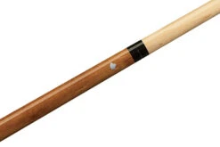 Einfaches, kirschholz-farben gebeiztes Queue mit silbernem Ahornblatt-Logo und schwarzem Griffband aus irischem Leinen.