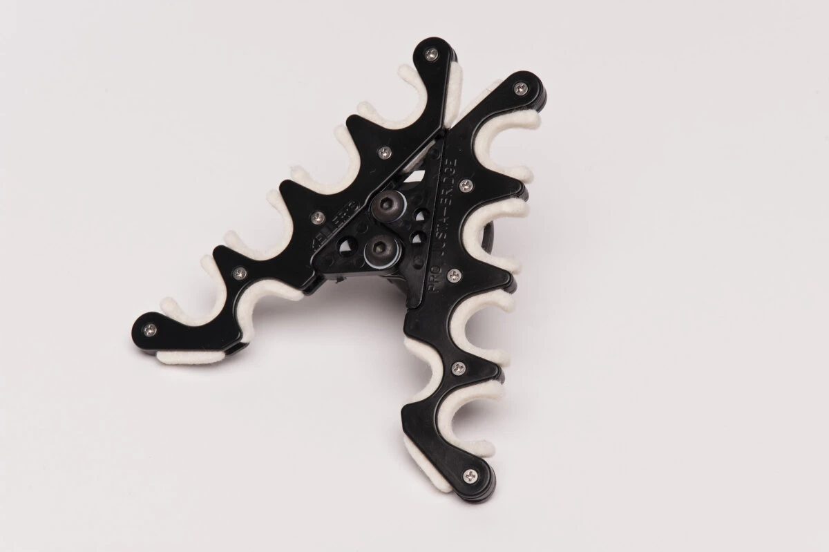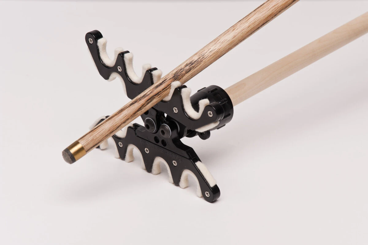 Die Just-A-Bridge ist eine revolutionäre Innovation bei Queue-Brücken bzw. Hilfsqueues. Die Just-A-Bridge wird auf ein Hausqueue oder Ihr Breakqueue aufgesteckt. Mit dem eingebauten Drehmechanismus können die Sie die mit einem Dreh des Hilfsqueues die Position der Just-A-Bridge einstellen. Machen Sie Jump-Shots und genießen Sie eine völlig neue Sicherheit bei Rückläufern oder schwierigen Stößen. Die Führungen der Just-A-Bridge sind mit Filz versehen, sodass Ihr Queue fest sitzt, sauber gleitet und keine Kratzer davonträgt. Schauen Sie in dieses Video, um die Möglichkeiten der Just-A-Bridge zu entdecken: