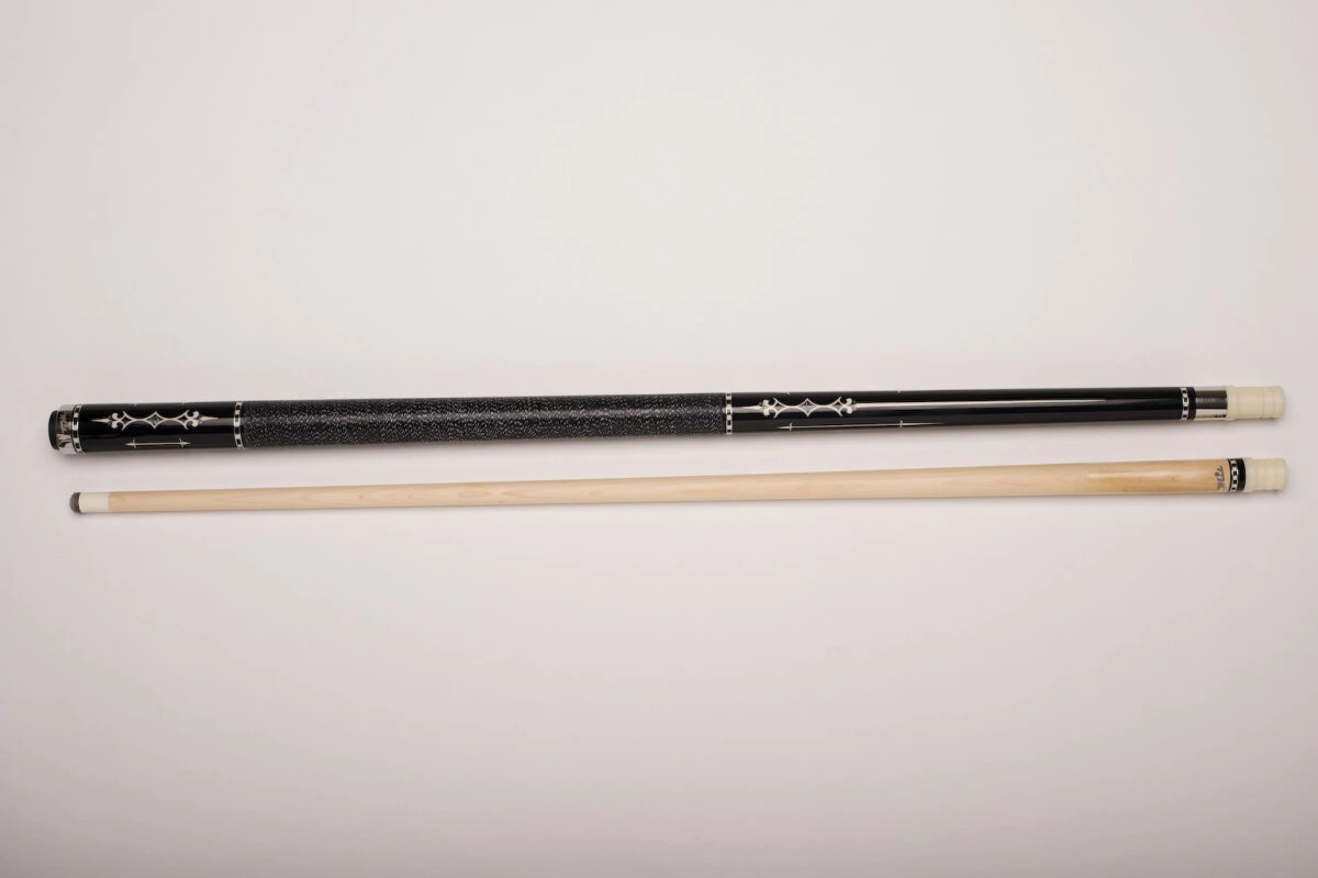 Sehr schönes, traditionelles Design mit Einlegeoptik. Das Design wird mit einer Folie geklebt und ĂĽberlackiert; so entsteht die Optik von hochwertigen Einlegearbeiten. Die schönen Zierringe am Griffband und am Gewinde veredeln das Erscheinungsbild zusätzlich. Wir haben hier eine zuverlässige 3/8×10-Verschraubung mit Holzgewinde fĂĽr beste KraftĂĽbertragung beim StoĂź. Das Griffband besteht aus einer Leinenwicklung aus irischem Leinen. Bei diesem Modell wurde eine Ferrule japanischer Herstellung verarbeitet und mit einem Triangle-Qualitätsleder versehen. Rostfreies Metall am Ende des Queues macht den besonderen Eindruck komplett. Lieferung inkl. Gewindeschoner zum Schutz Ihres Queues.