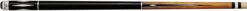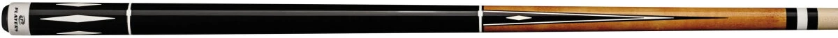 Klassisch gestaltetes Queue aus antik gebeiztem Ahorn und nachtschwarzem Butt mit vier schwarzen und weiĂźen Flammen, weiĂźen Diamanten und schwarz lackiertem Griffbereich. WeiĂźes Implex-Gewinde.