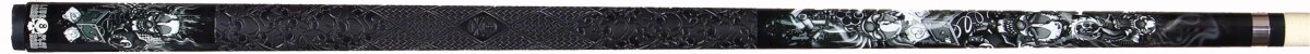 Der Horror-Clown unter den Queues: Wer mit seinem Queue Angst und Schrecken am Tisch verbreiten will, sollte sich dieses Modell mal ansehen. Das nachtschwarze Queue aus Grade-A-Hartholz-Ahorn ist mit Killer-Clown-Motiven verziert. Der gummierte Griffteil kommt dazu passend im schwarzen Totenkopf-Muster daher.