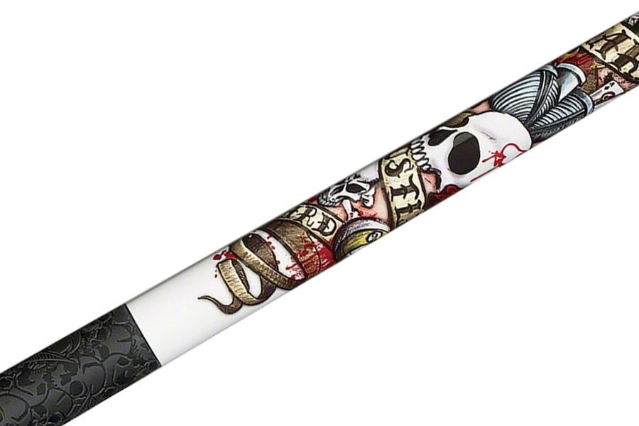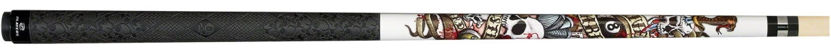 FĂĽr echte Hustler: „Live Hard – Hustle Hard“ ist das Motto dieses klassischen Queues aus Grade-A-Hartholz-Ahorn mit tattoo-inspirierten Verzierungen rund um eine schwarze Acht. Der gummierte Griffteil kommt dazu passend im schwarzen Totenkopf-Muster daher.