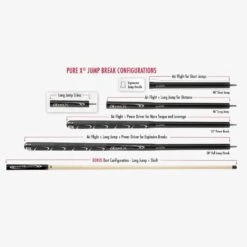Die neuen Break-Jump-Queues von Players mit der Pure-X-Technologie geben Ihnen ultimative Kontrolle ĂŒber Ihr Spiel. Das Queue verfĂŒgt ĂŒber vier SchnellverschlĂŒsse, mit denen Sie fĂŒr jeden StoĂ die perfekte Konfiguration finden können. Nutzen Sie den vorderen Air Flight-Teil mit ergonomischen Griff fĂŒr superkurze Jumpshots, ergĂ€nzen Sie den Jump-Extender fĂŒr lĂ€ngere Jumps, kombinieren Sie Air Flight und Power Driver zu einem verkĂŒrzten Break-Queue, um mehr Power und Hebel zu erzeugen und verwenden Sie Air Flight, Long Jump und Power Driver fĂŒr explosive Breaks in der gewohnten LĂ€nge.
