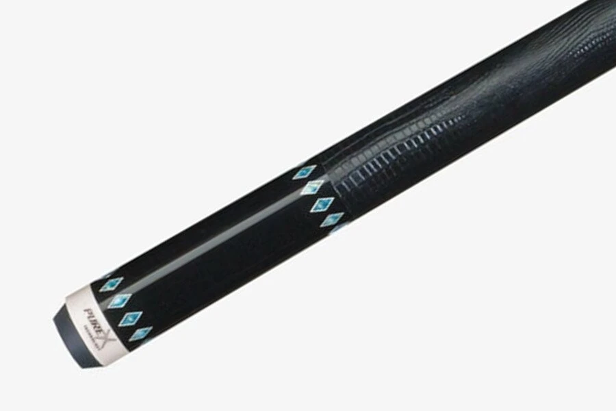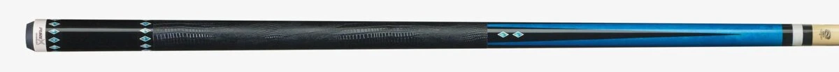 Dieses Modell aus der beliebten HXT-Serie kommt im meeresblauen Look mit schwarzen Points und hellblauen Verzierungen daher. Das aus Vogelaugenahorn gefertigte Queue verfügt über ein schwarzes Kunstleder-Griffband mit Echsen-Prägung und setzt beim Oberteil auf innovative Low-Deflection-Technologie. Auf der Spitze sitzt ein hochwertiges Kamui Soft Mehrschichtleder.