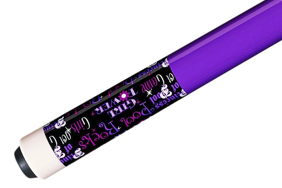 Die Queues dieser Reihe sind für Kinder optimiert – sie sind etwas kürzer und leichter und haben schicke Designs für Jungs und Mädchen. Dieses Queue aus nordamerikanischem Ahorn hat ein schönes Design mit schwarzem Hintergrund und Billardbegriffen in bunter Schrift.
