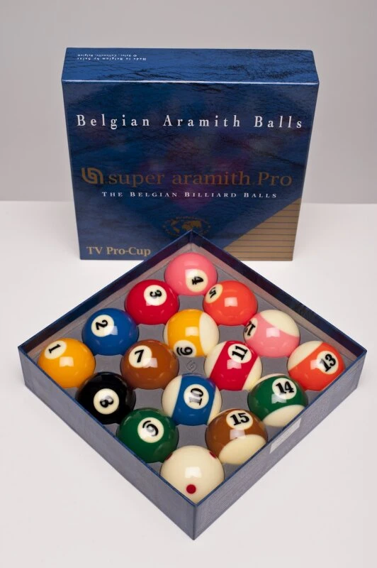 Der Super Aramith Pro TV-Kugelsatz fĂŒr Pool-Billard ist der Mercedes unter den Billardkugeln. Das Material Super Aramith Pro sucht seinesgleichen in Hinsicht auf die PrĂ€zision der Verarbeitung, Gewicht, Einheitlichkeit und Langlebigkeit. Die OberflĂ€che ist speziell gehĂ€rtet und daher von einer gleichbleibenden und langanhaltenden QualitĂ€t.