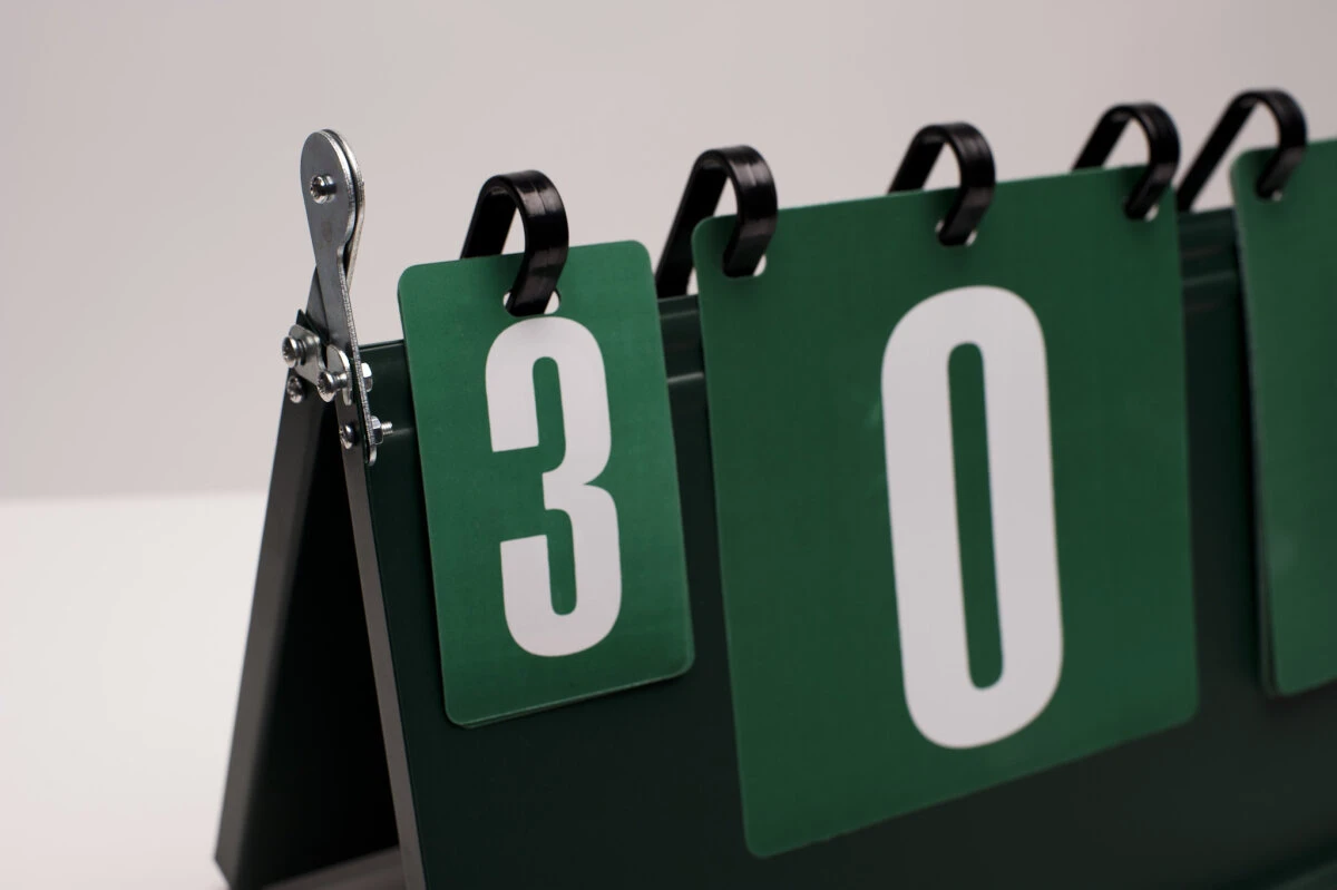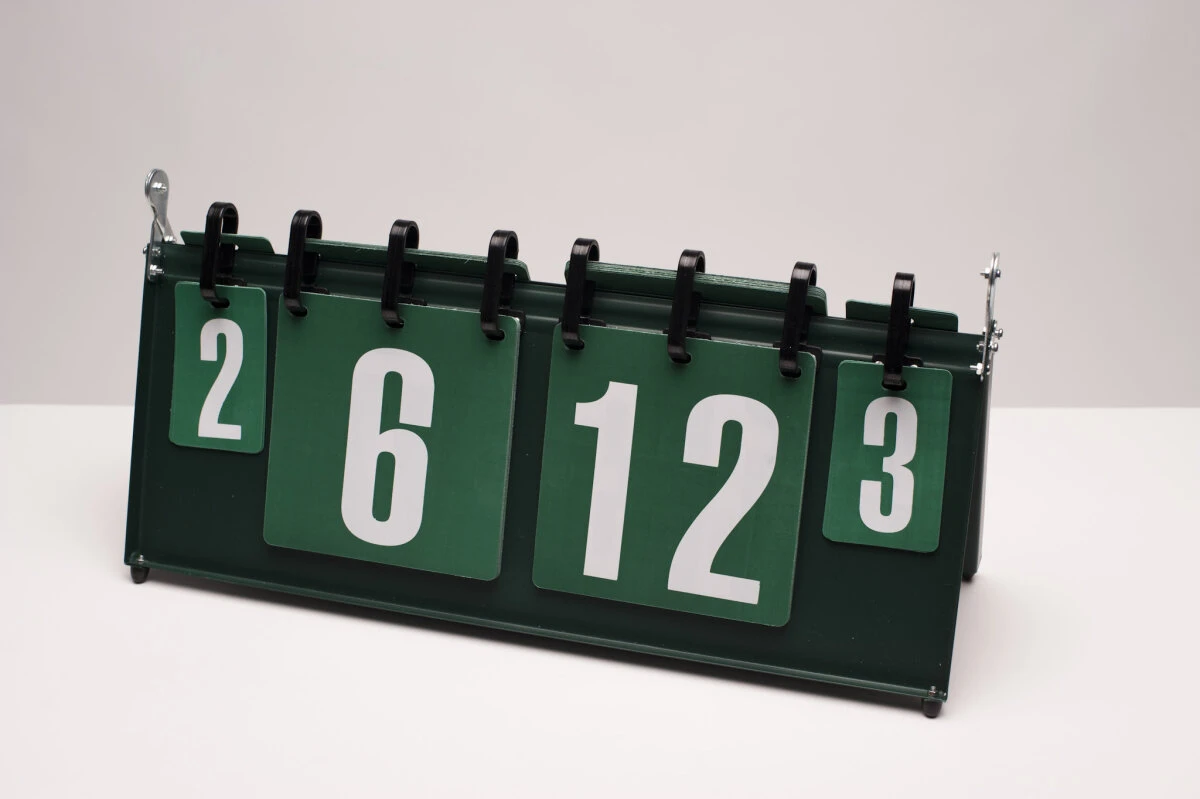 Flexible Zähltafel zum Punktezählen im Pool-Billard. Mit zwei Ziffernkreisen für Sätze und Gewinnspiele.